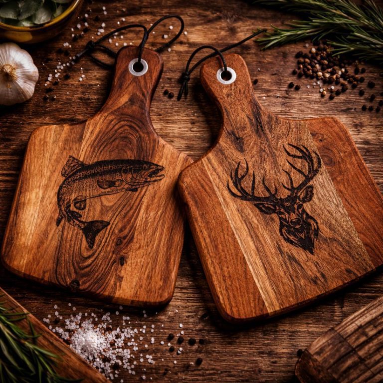 Skærebrætterne kan bruges til meget mere end den daglige madlavning. De egner sig også godt til servering af tapas, brød, ost, charcuteri og andre anretninger, hvor præsentationen gerne må have lidt ekstra kant. De indgraverede motiver giver brætterne et personligt udtryk og gør dem særligt velegnede til dig, der holder af jagt, fiskeri, natur og godt håndværk.